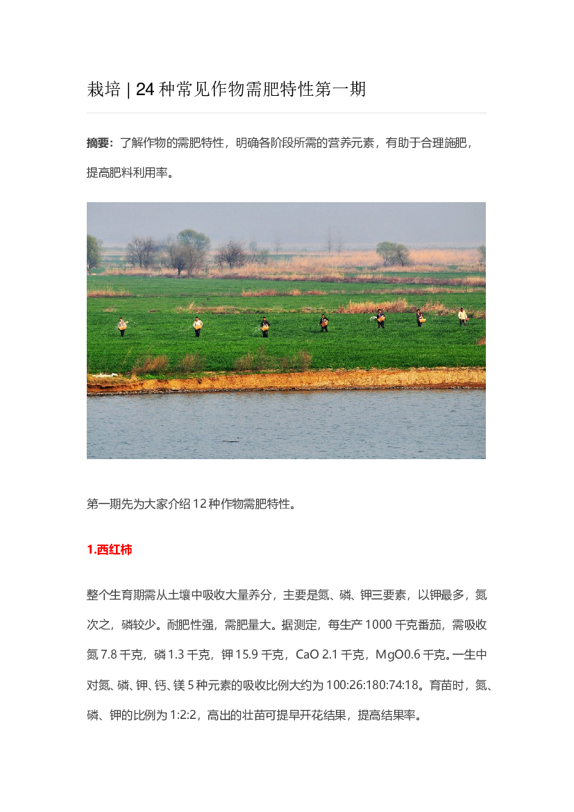 简介:24种常见作物需肥特性