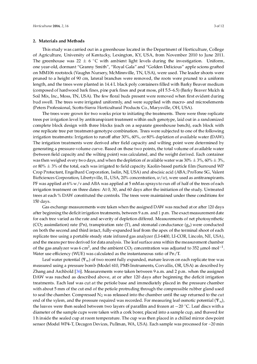 简介:Apple Tree Responses to Deficit Irrigation Combined with Periodic Applications of Particle Film or Abscisic Acid