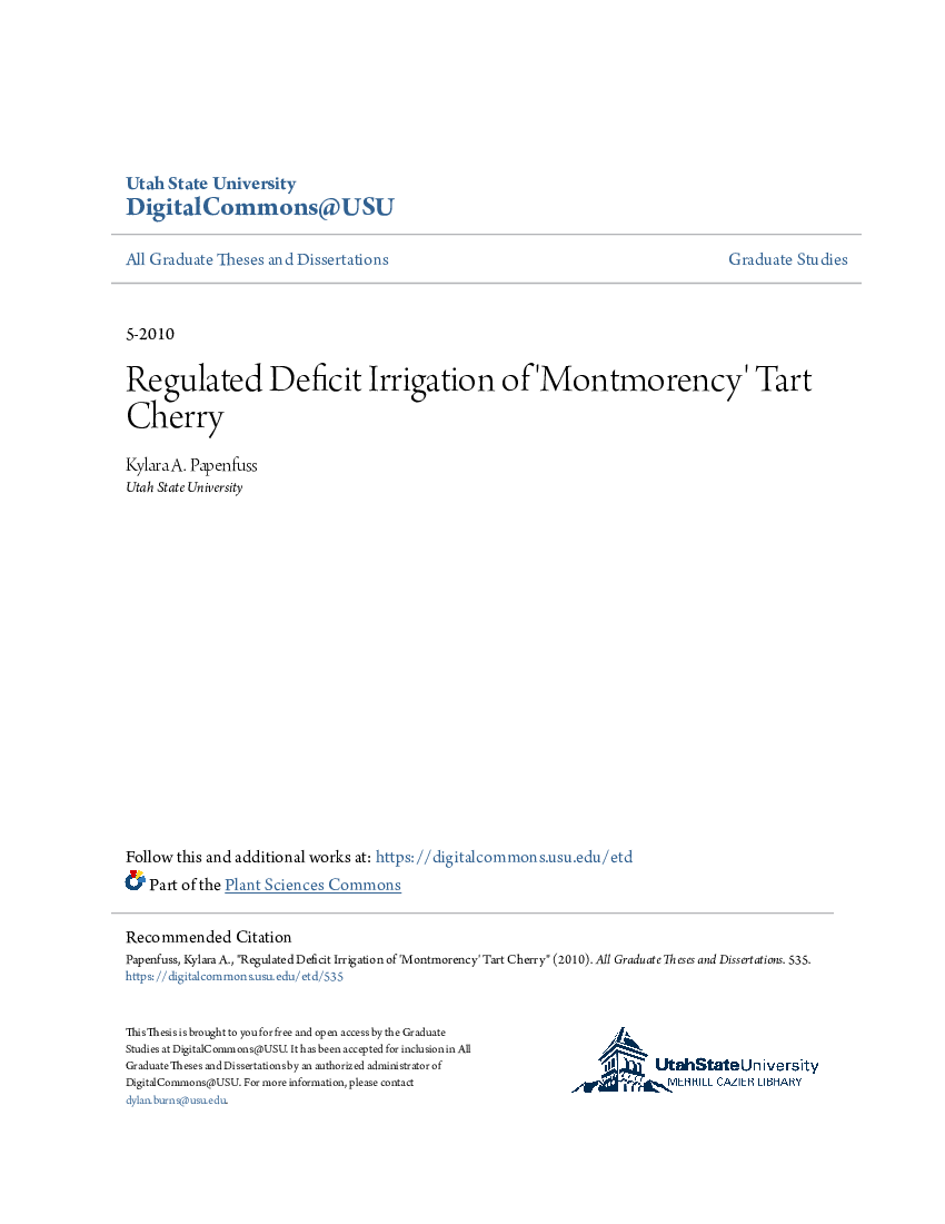 简介:Regulated Deficit Irrigation of Montmorency Tart Cherry