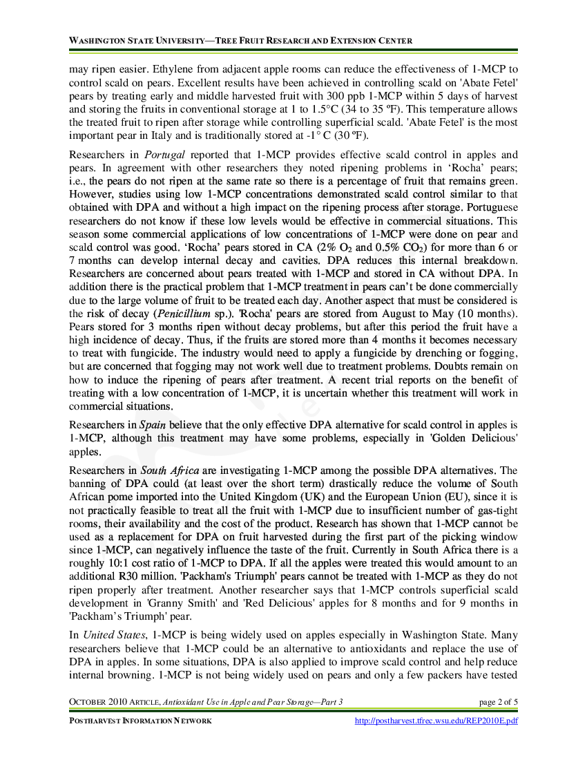简介:Researchers report that 1-MCP has been very effective as a tool to control storage scald in apples and pears.