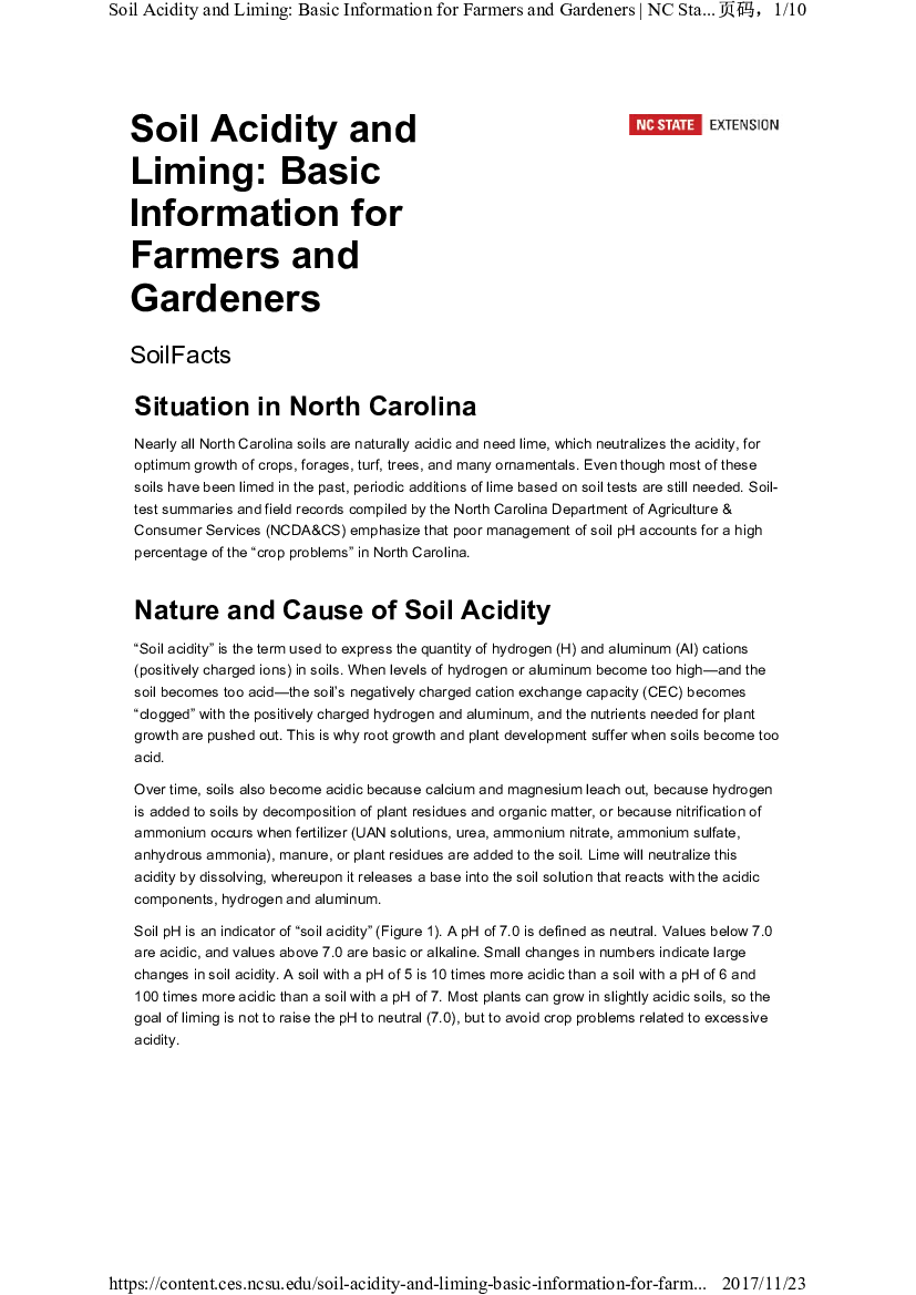 简介:Soil Acidity and Liming Basic Information for Farmers and Gardeners