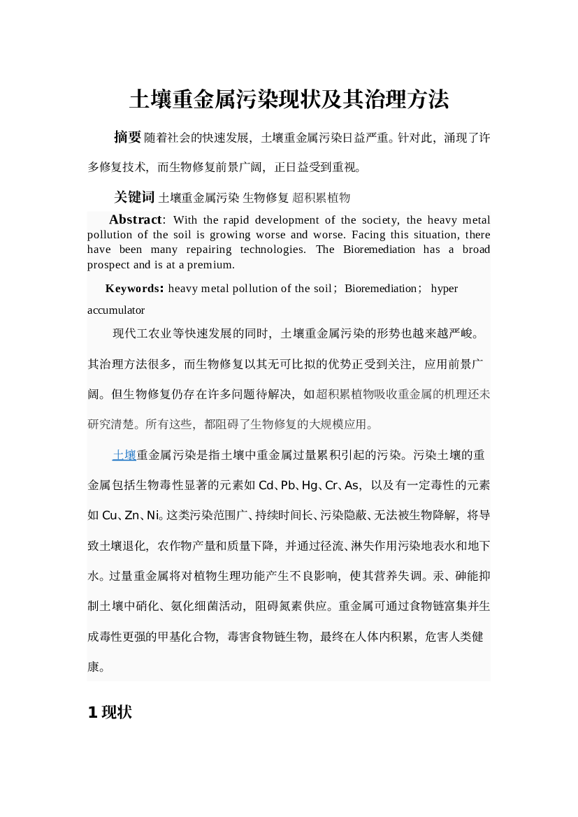 简介:土壤重金属污染现状及其治理方法