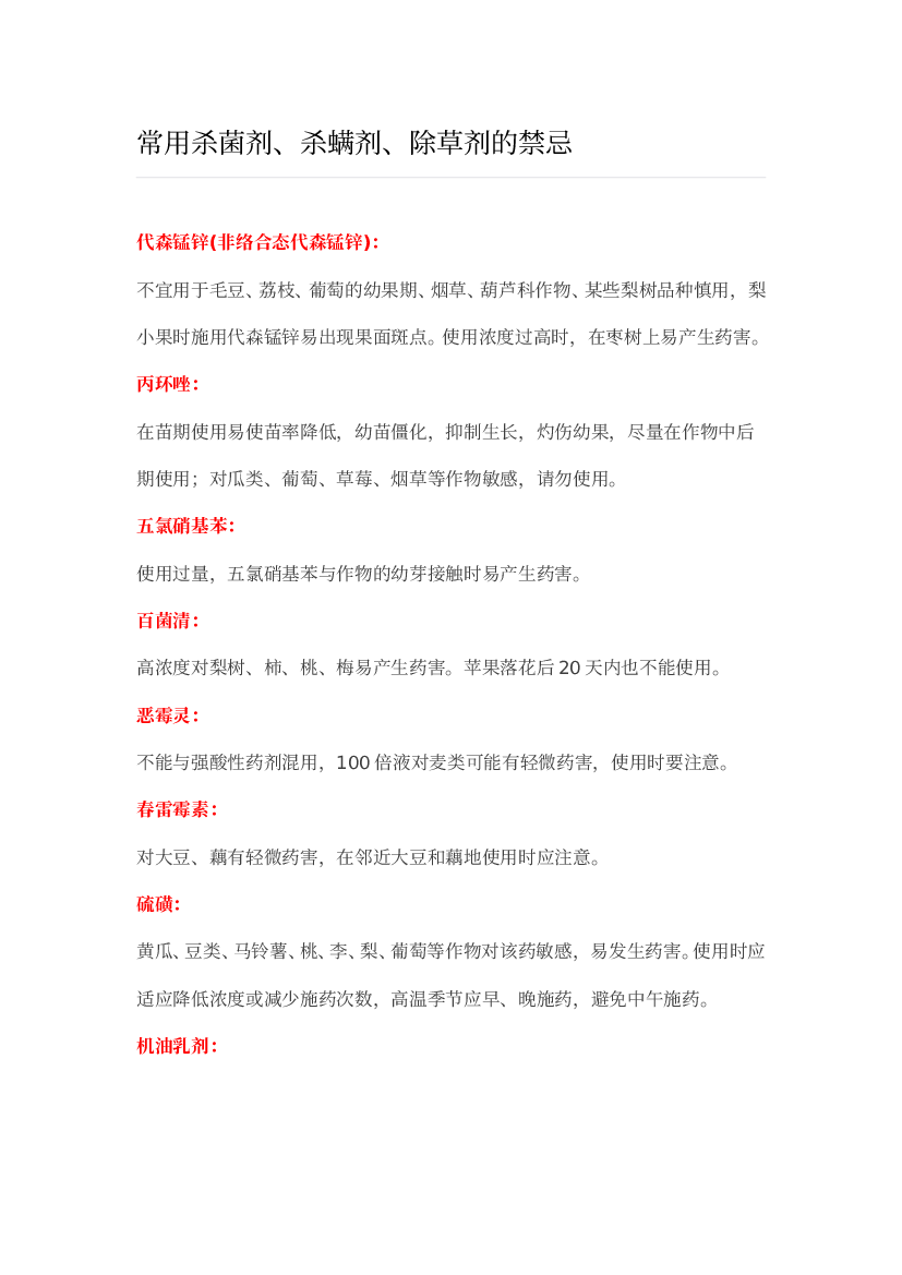 简介:常用杀菌剂杀螨剂除草剂禁忌