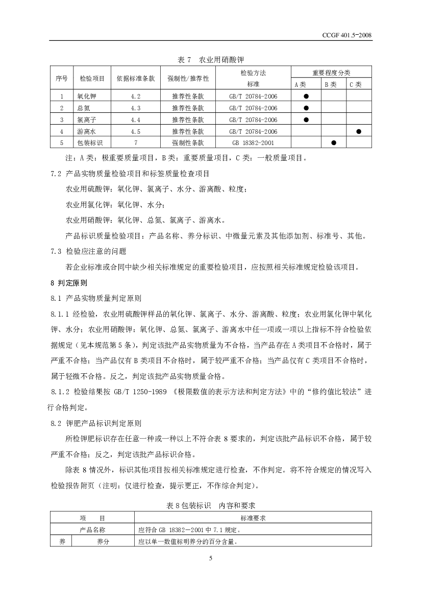 简介:CCGF 401.5-2008 钾肥(硫酸钾 氯化钾 硝酸钾)