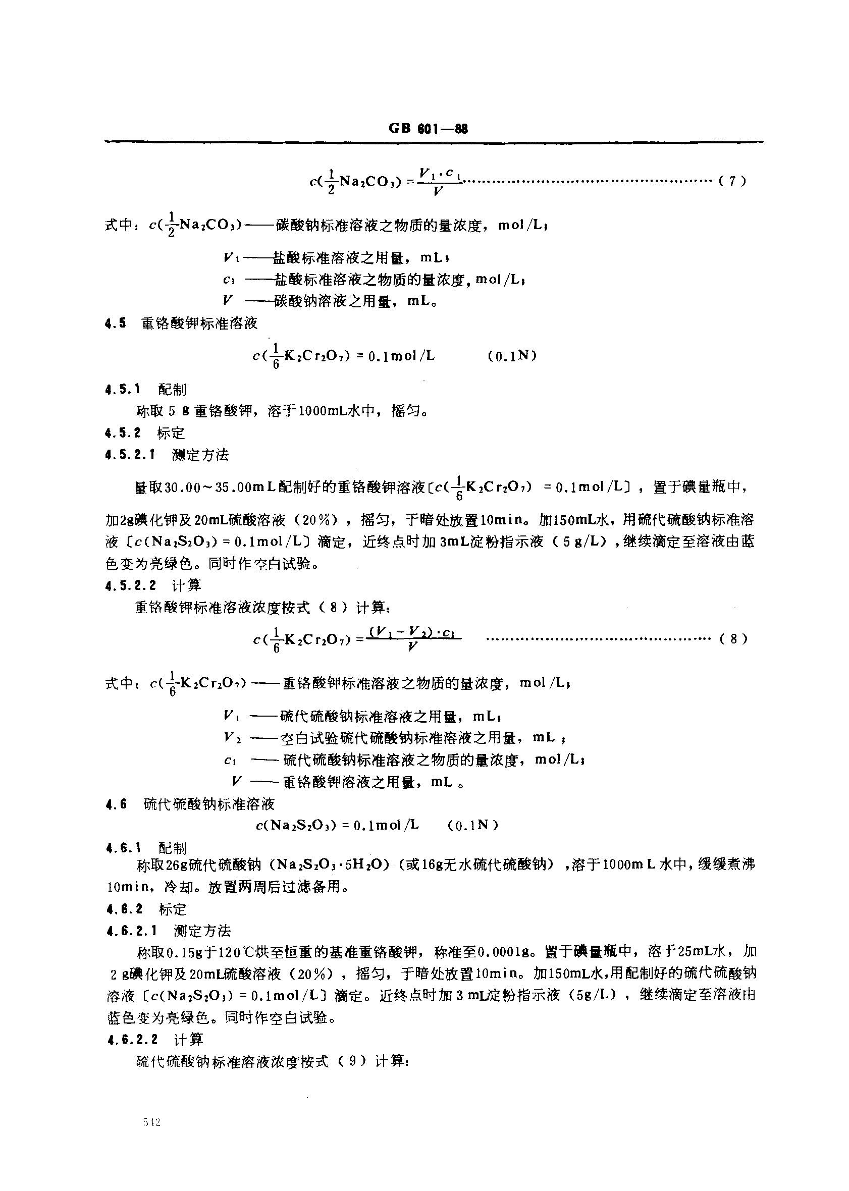 简介:GB 601-1988 化学试剂 滴定分析(容量分析)用标准溶液的制备