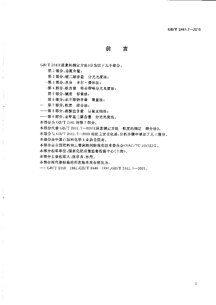 简介:GBT 2441.7-2010 尿素的测定方法 第7部分:粒度 筛分法