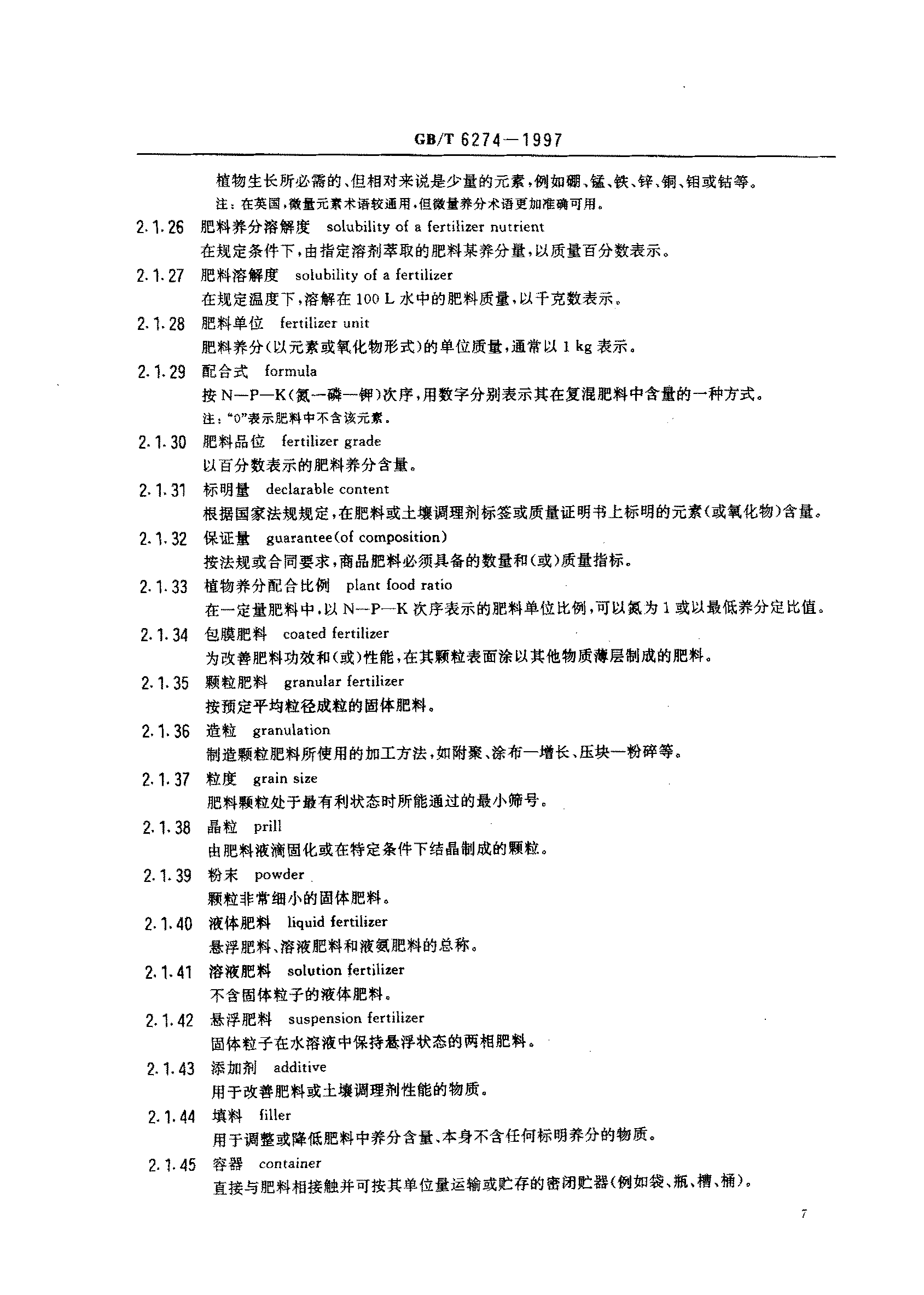 简介:GBT 6274-1997 肥料和土壤调理剂术语