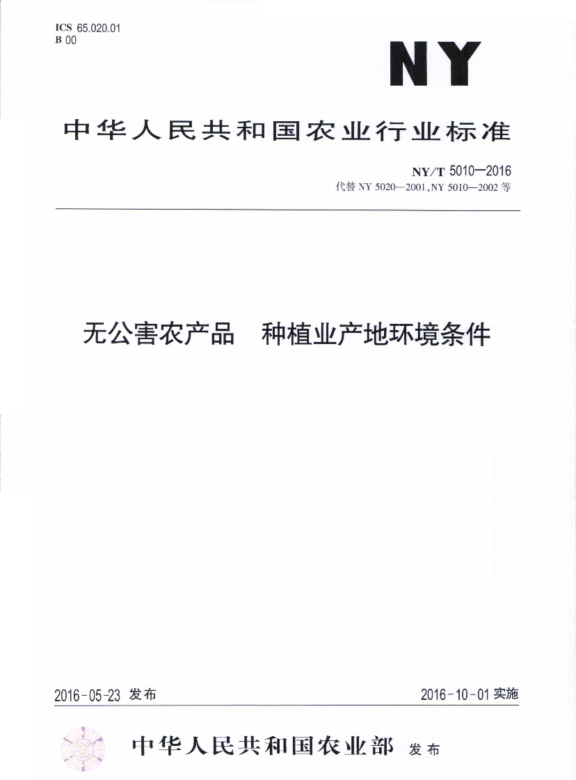 简介:NYT 5010-2016 无公害产品 种植业产地环境条件