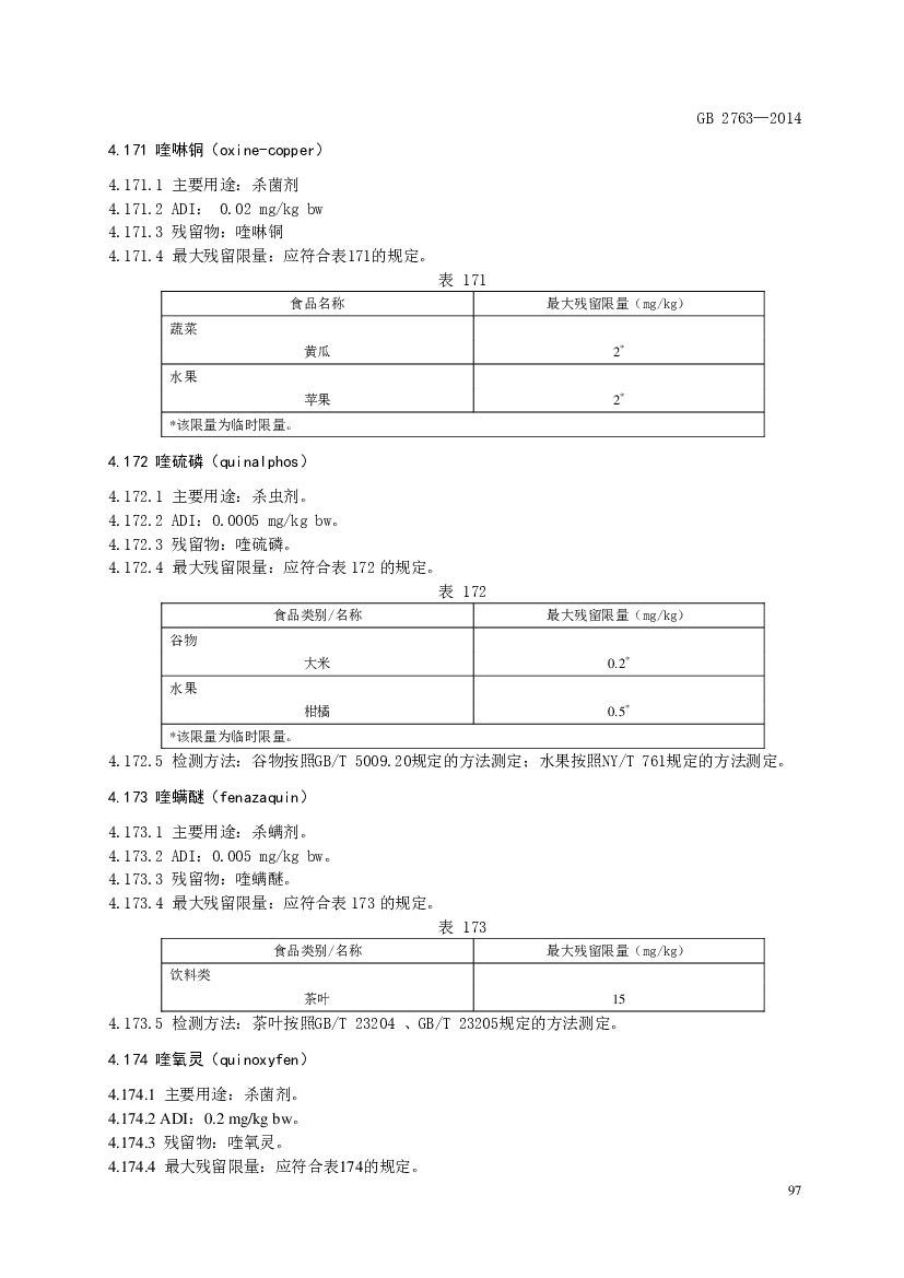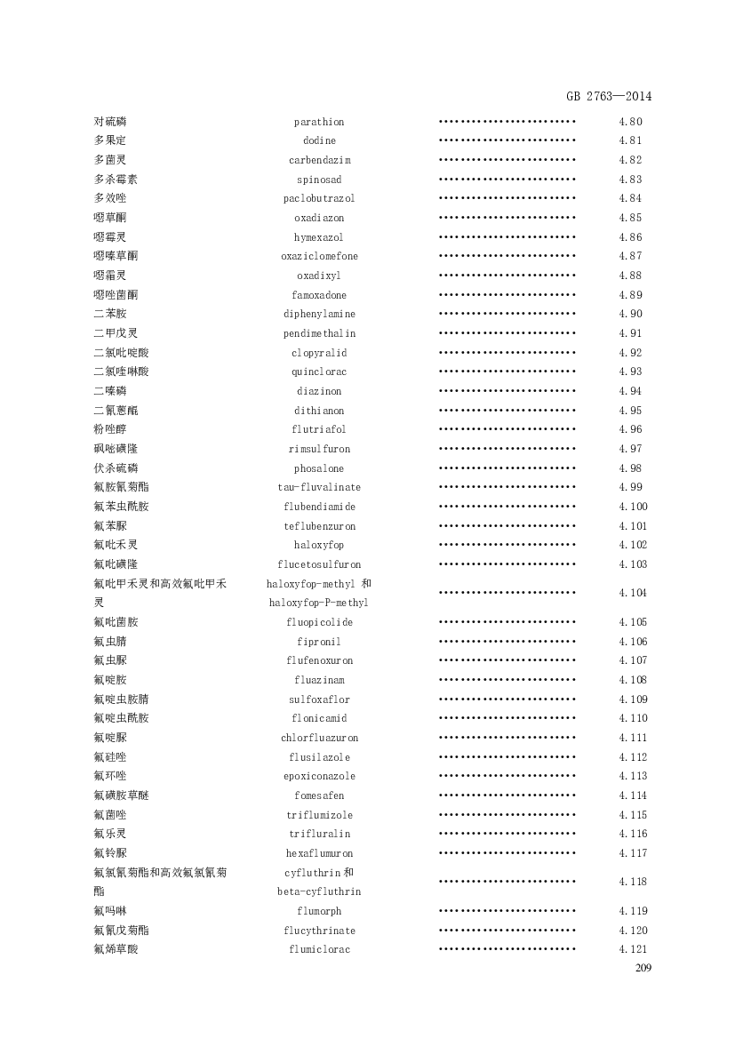 简介:GB 2763-2014 食品安全国家标准 食品中农药最大残留限量