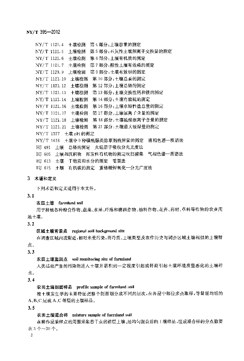 简介:NYT 395-2012 农田土壤环境质量监测技术规范