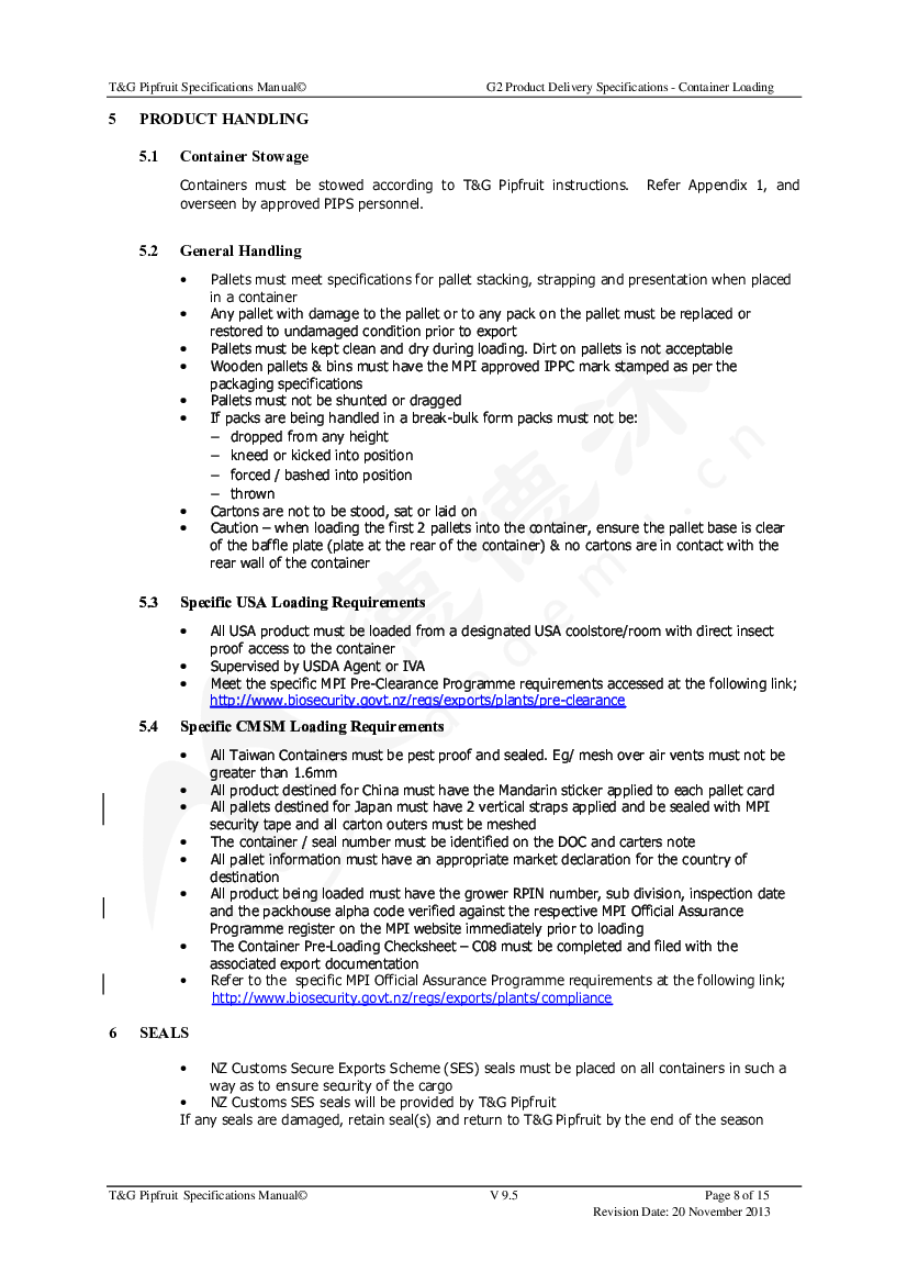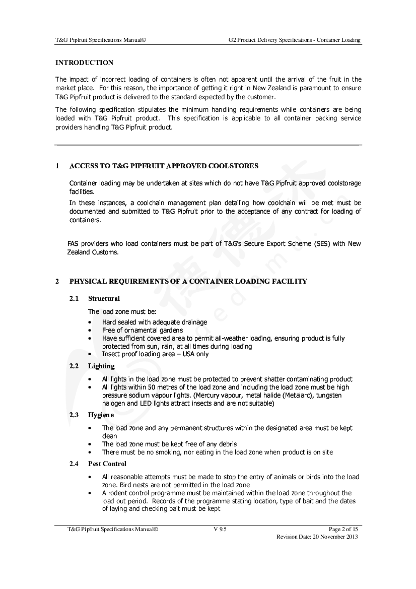 简介:The purpose of this specification is to clearly define the responsibilities and requirements of both T&G Pipfruit and FAS Service Providers in the process of delivering product to FAS point.
