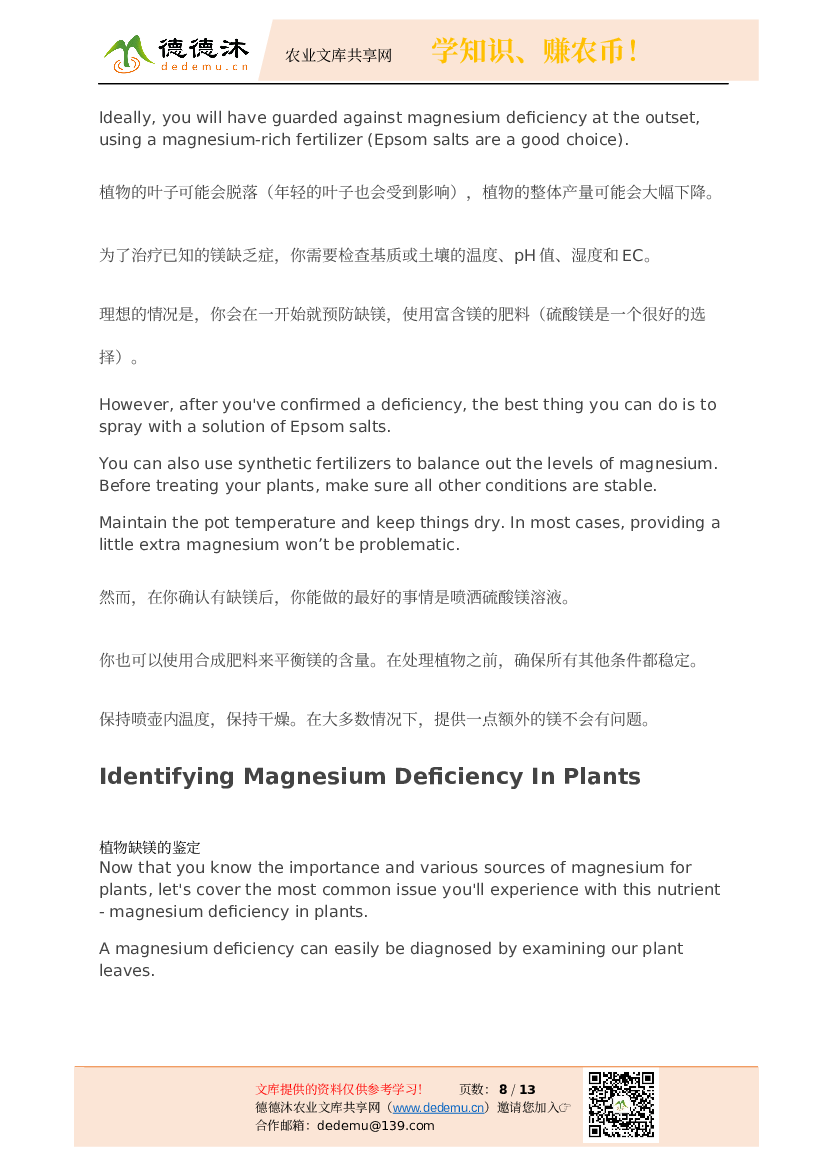 简介:镁对我们植物的健康起着重要作用。它是我们的植物如何将光源转化为能量,促进植物生长和茁壮成长的关键成份之一。