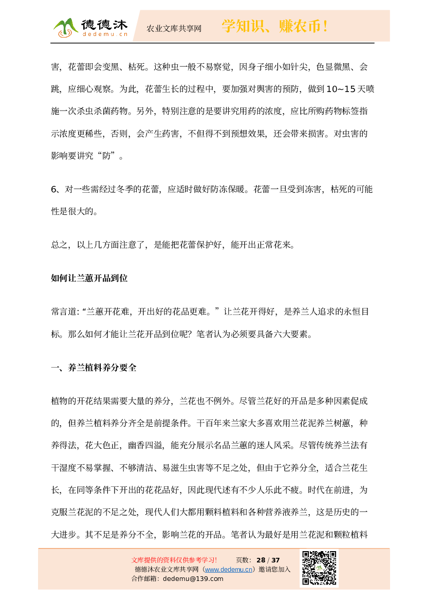 简介:蕙兰栽培详解 蕙兰栽培要点 蕙花的生态特性与春、秋、寒兰在叶质、根、芦头等方面完全不同。春兰每一芽有五片衣壳(包衣),而蕙花有七片,另外蕙花一芽之叶有五六片至七八片,乃至有十片叶之多,芦头很小,甚至几乎没有芦头,但根则通常较春兰粗多且长。由此可知蕙花较其他兰花少了一个芦头——储藏养料的仓库,而多了一些叶片,消耗养料的肌骨。因此在营养的吸取、消耗、制造、输入、生发的正常生长循环周期就加快了,在栽培管理上,就有一些不同于其他兰花的要求。