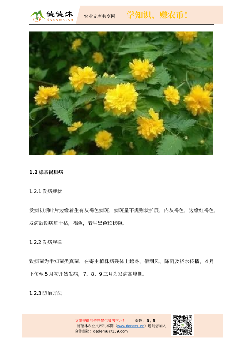关键字:棣棠 病虫害防治