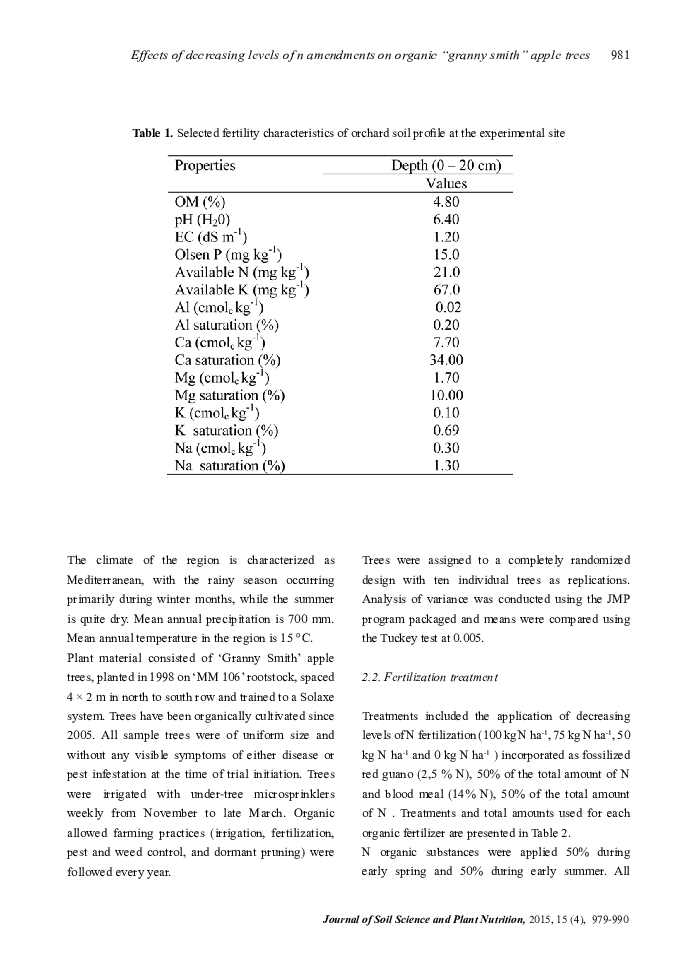 简介:Effects of decreasing levels of N amendments on organic “granny smith” apple trees