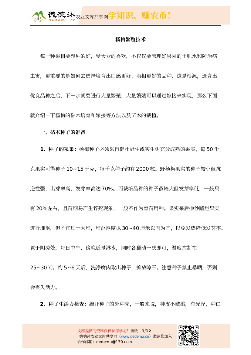 简介:每一种果树要想种的好,受大众的喜欢,不仅仅要管理好果园的土肥水和防治病虫害,更重要的是如何去选择培育出口感更好、卖相更好的品种,这是根源,选育出优良品种之后,下一步就要进行大量繁殖,大量繁殖可以通过嫁接来实现,那么下面就介绍一下杨梅的砧木培育和嫁接等方法以及苗木的栽植。