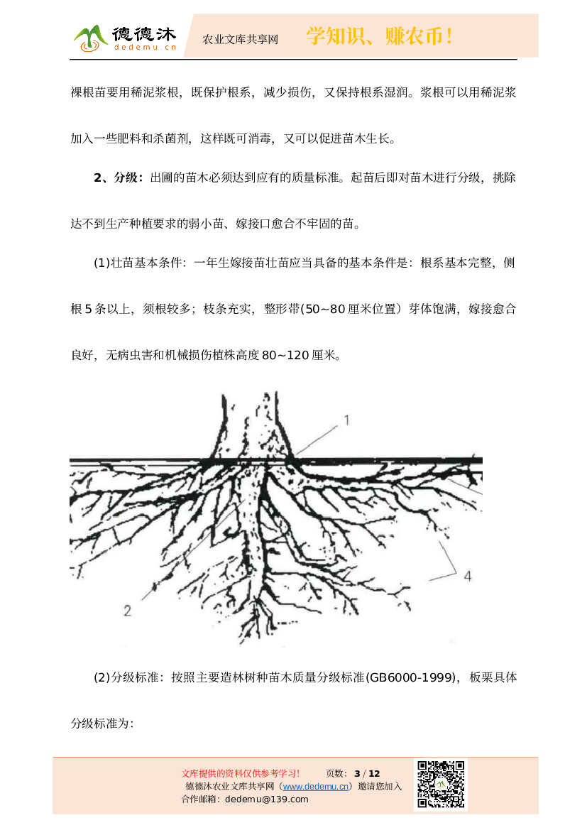 简介:种植户在栽植板栗的时候,要想板栗树近可能早结果,所选择的苗木品种不仅要在选择优良品种这条起跑线上超过其他的品种,更需要在苗木栽植前做好一系列的工作,比如说起苗要求、分级等,这样才能保证栽植的栗树长势一致,方便管理,同时为提前进入生殖生长提供基础。下面就介绍一下苗木的分级方法和栽植的注意事项。