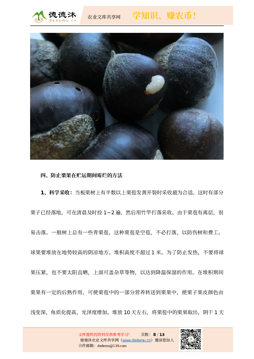 关键字:板栗采收及贮藏