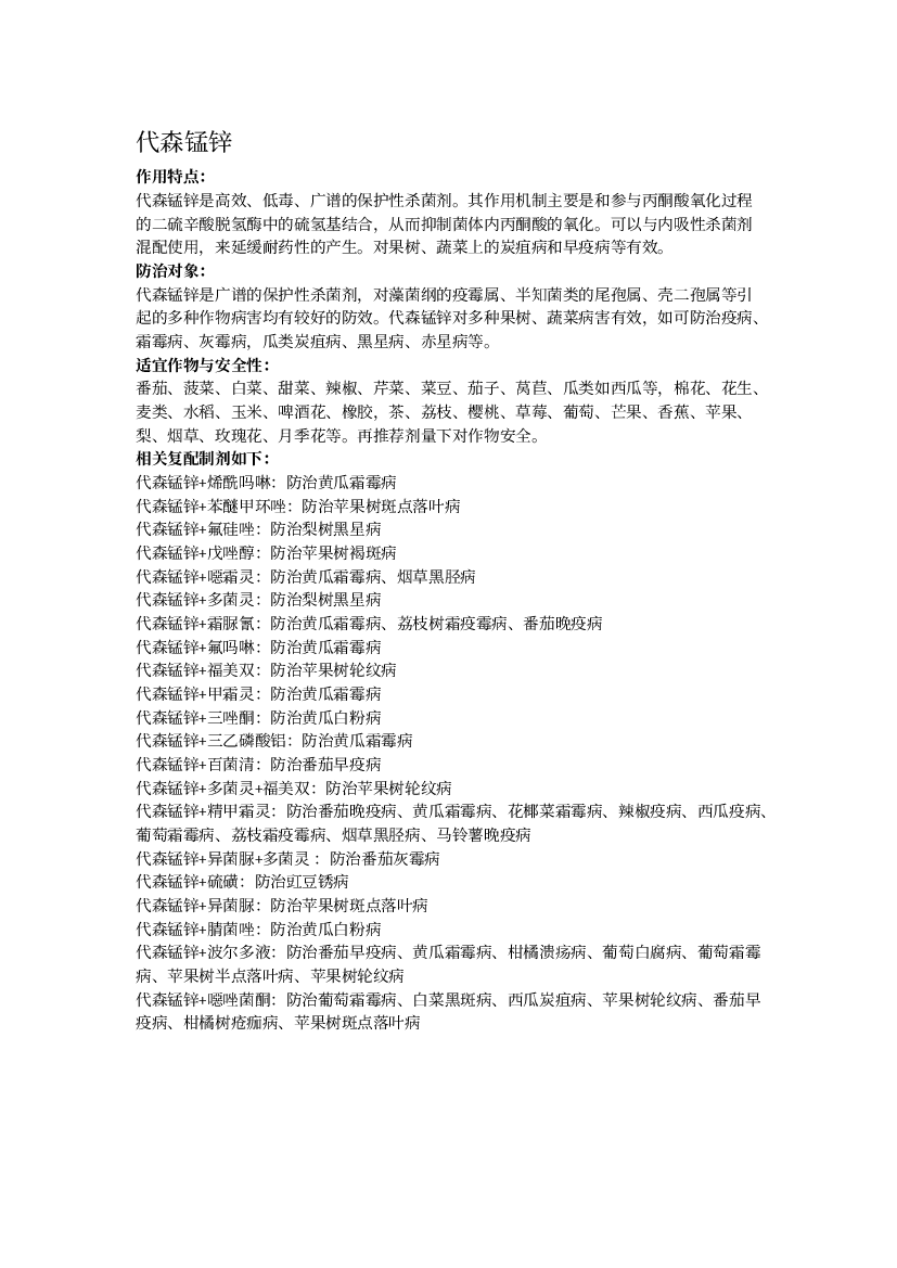 简介:代森锰锌是高效、低毒、广谱的保护性杀菌剂