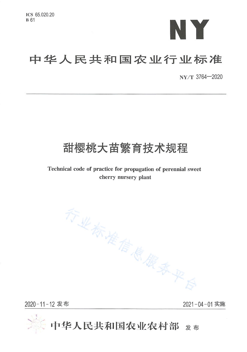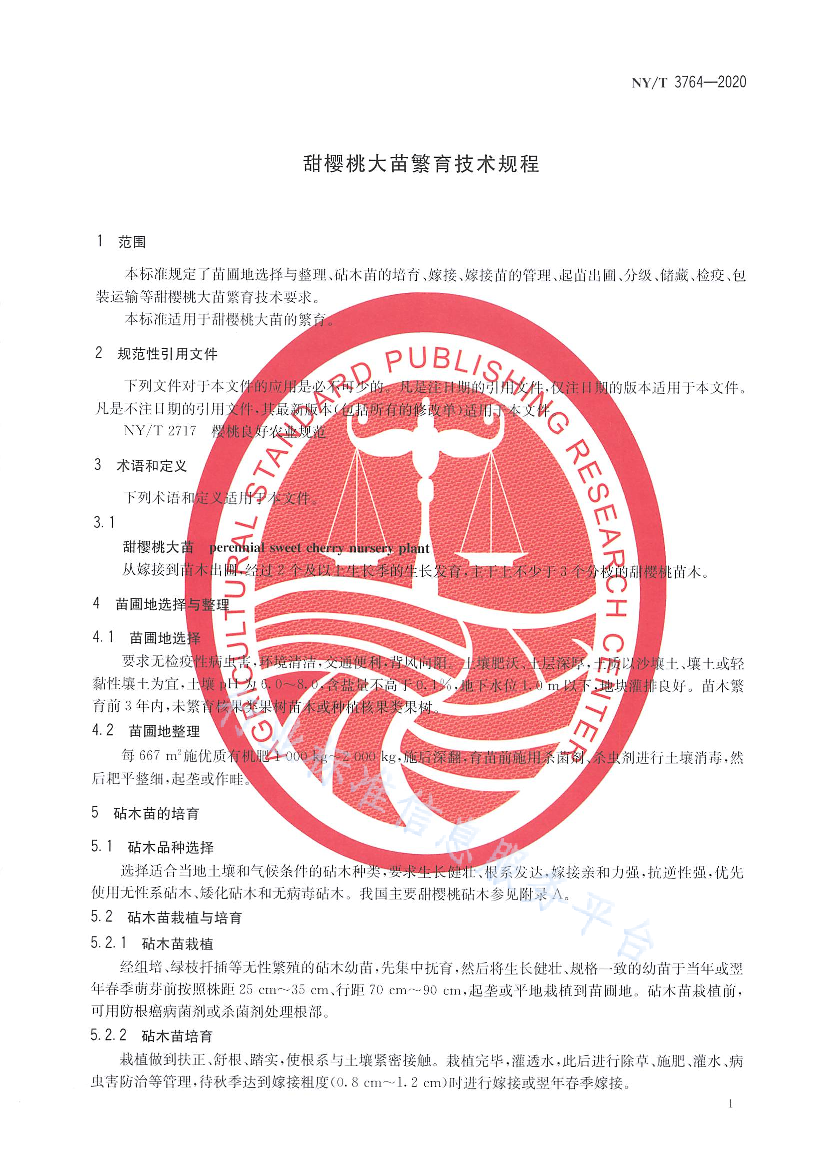 关键字:甜樱桃 栽培繁育 行业标准