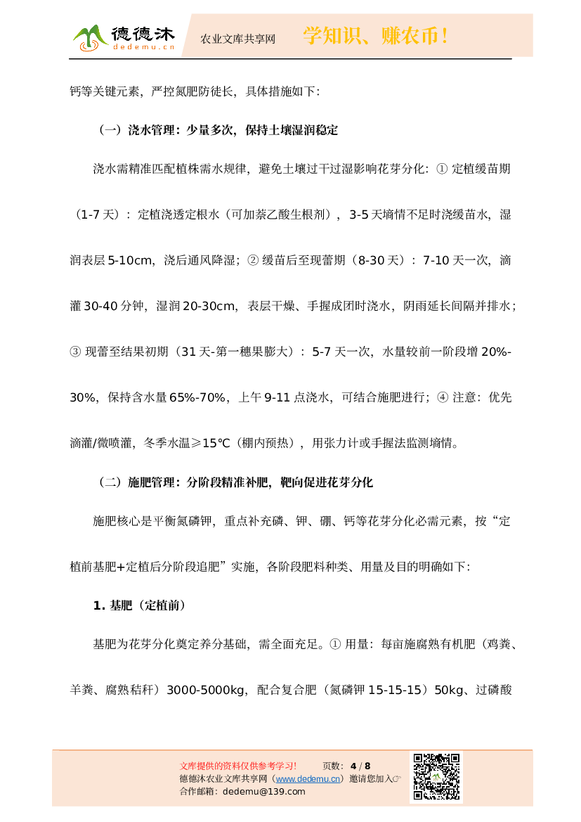 简介:花芽分化是番茄生长发育的关键环节,直接决定坐果率、果实品质及最终产量,其进程与质量深受环境条件和水肥供给影响,且贯穿番茄定植后至结果初期的核心生长阶段。为保障花芽早发多发、健壮发育,减少畸形花,本方案聚焦大棚番茄定植至结果期,核心围绕环境精准调控(温、光、湿分阶段优化)与水肥精准供给(基肥足、追肥靶向),重点明确各阶段磷、钾、硼、钙等关键元素的补充方案,配合整枝控旺、病虫害防治及动态监测调整,为高产优质栽培奠定坚实基础。