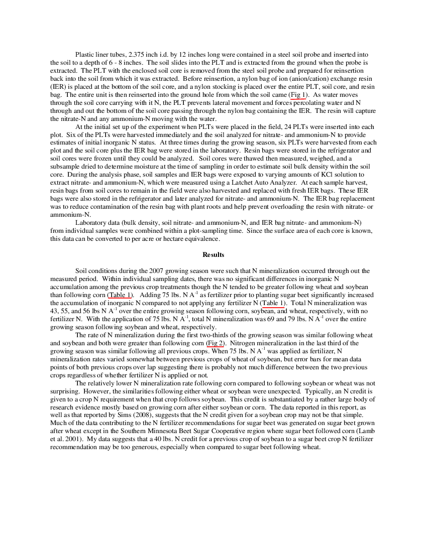 简介:ESTIMATING SOIL NITROGEN MINERALIZATION DURING THE GROWING SEASON IN SUGAR BEET GROWN AFTER CORN, WHEAT, AND SOYBEAN