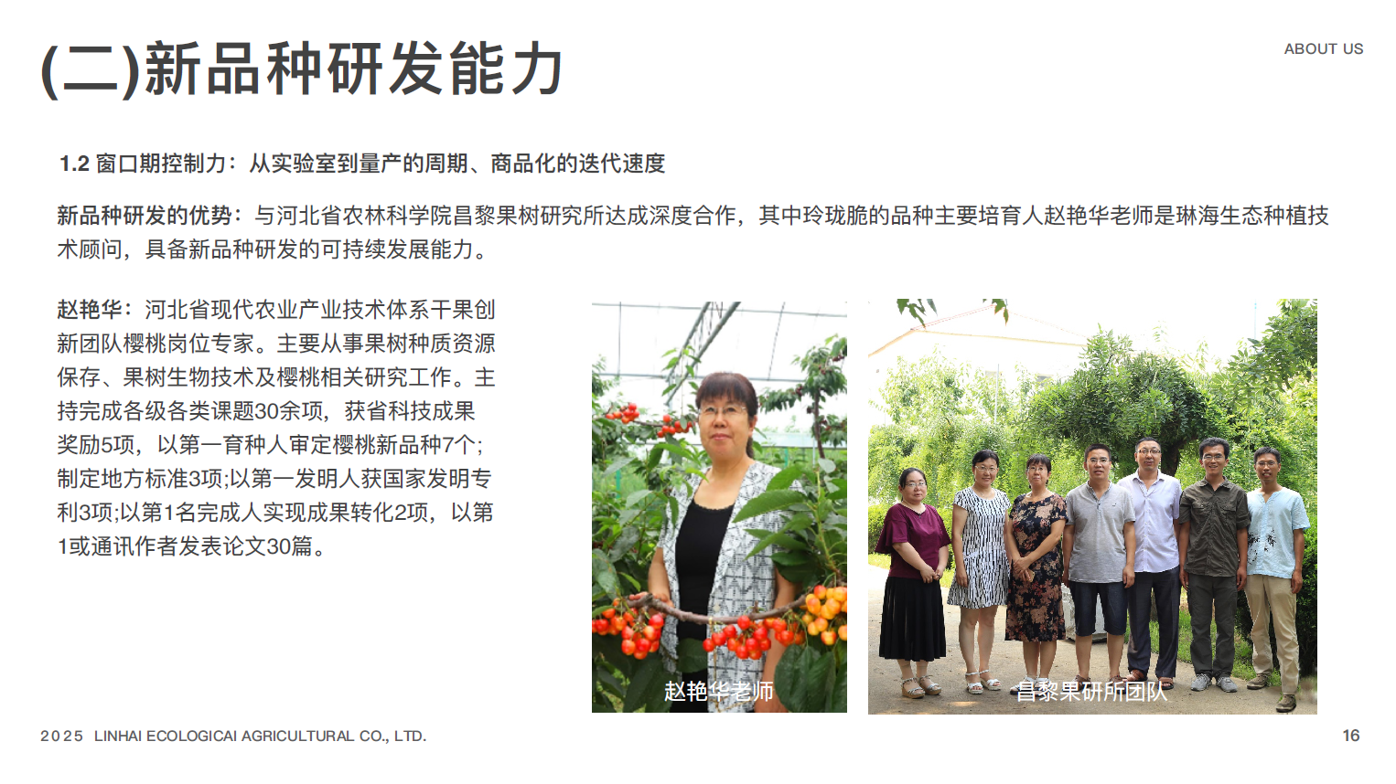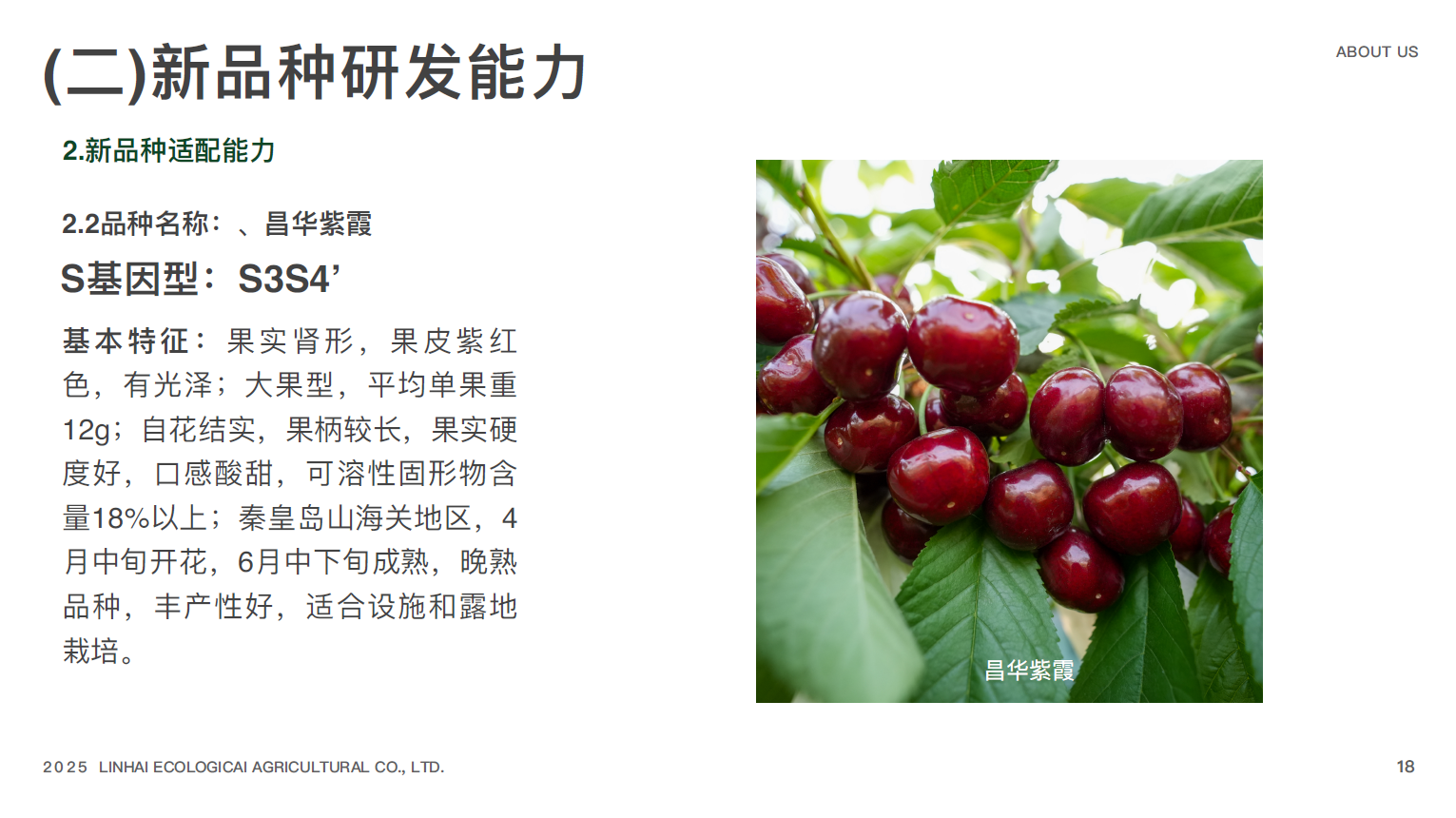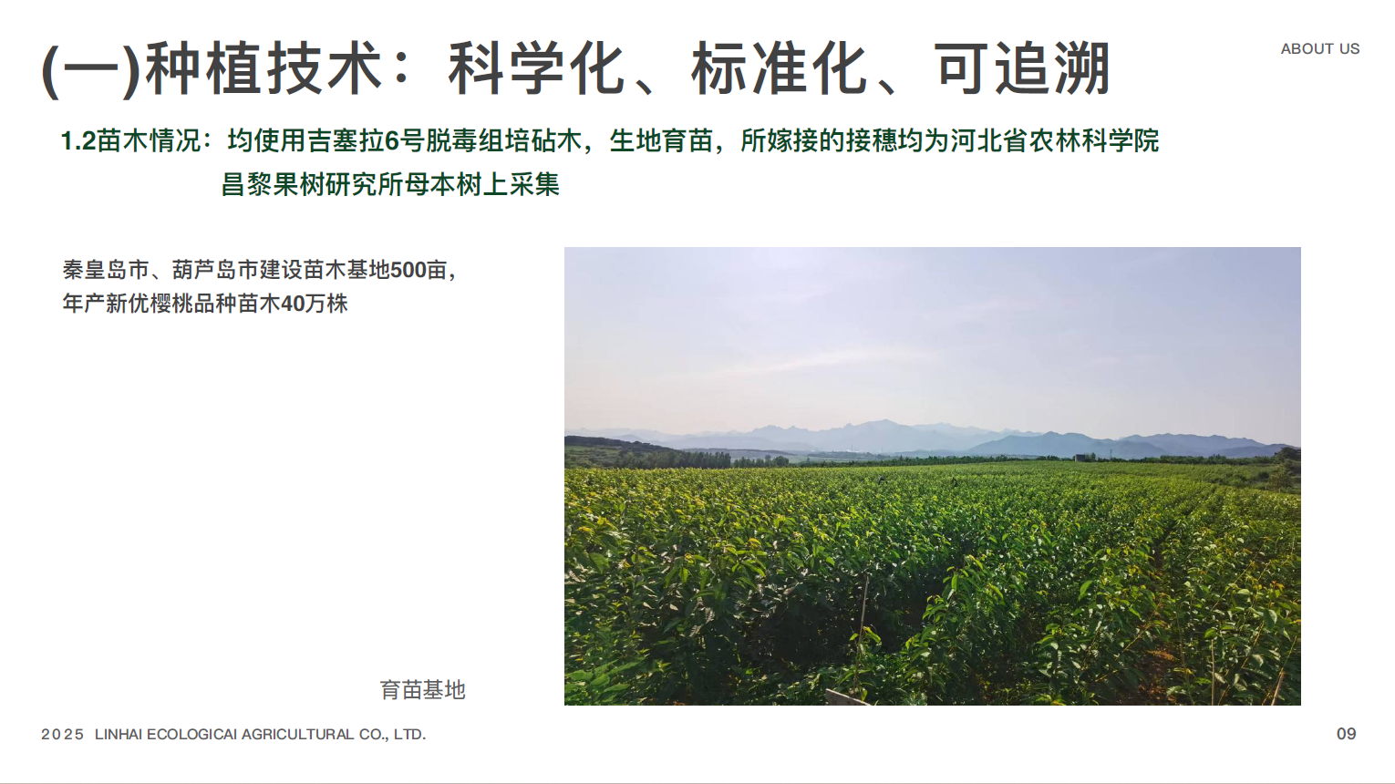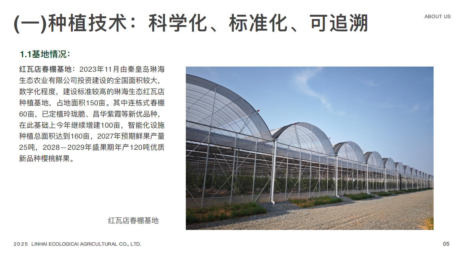 秦皇岛琳海生态农业有限公司成立于2020年,是一家年轻的樱桃全产业链生产公司。公司业务包含樱桃苗繁育、樱桃种植、苗木销售、
