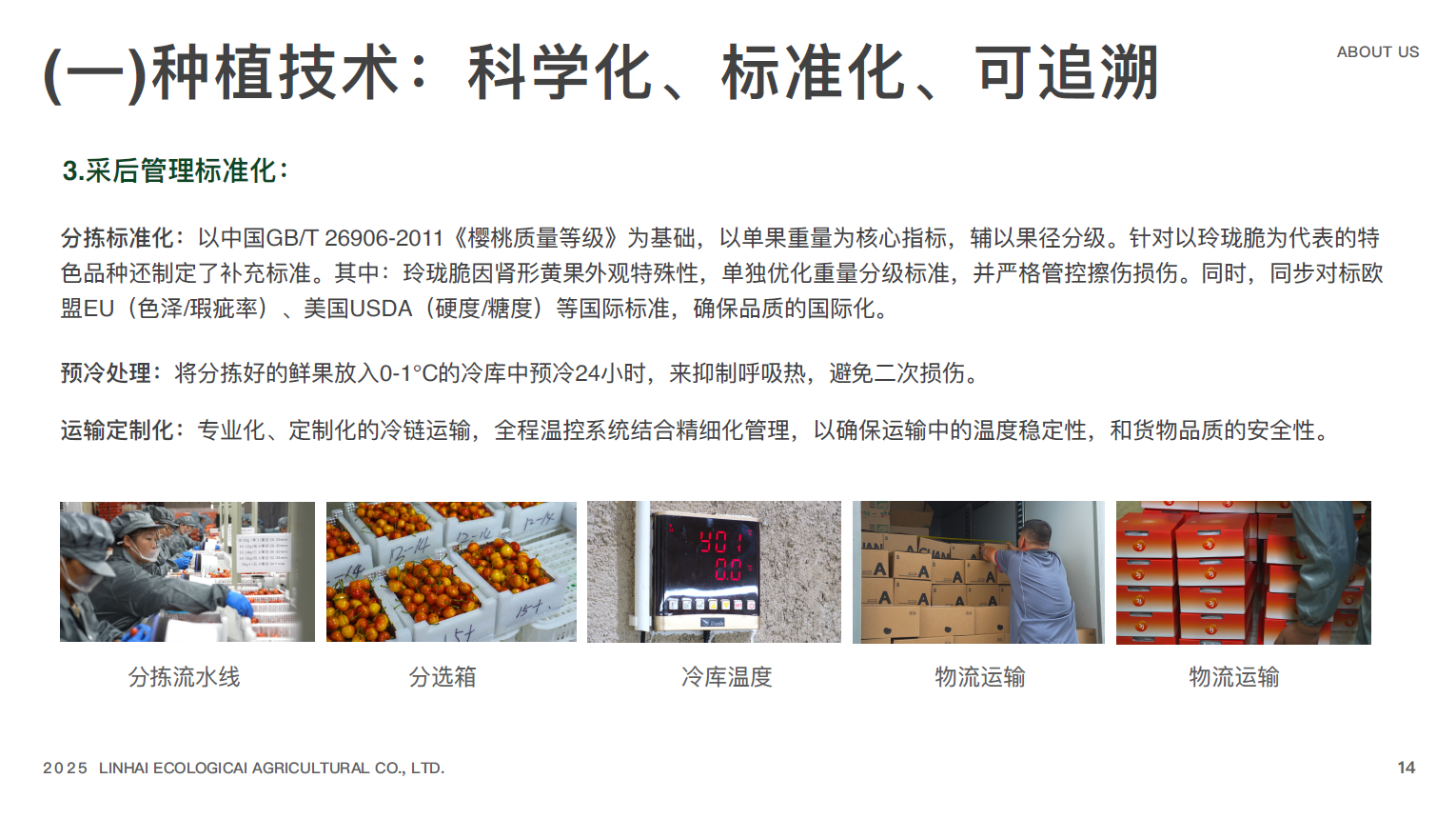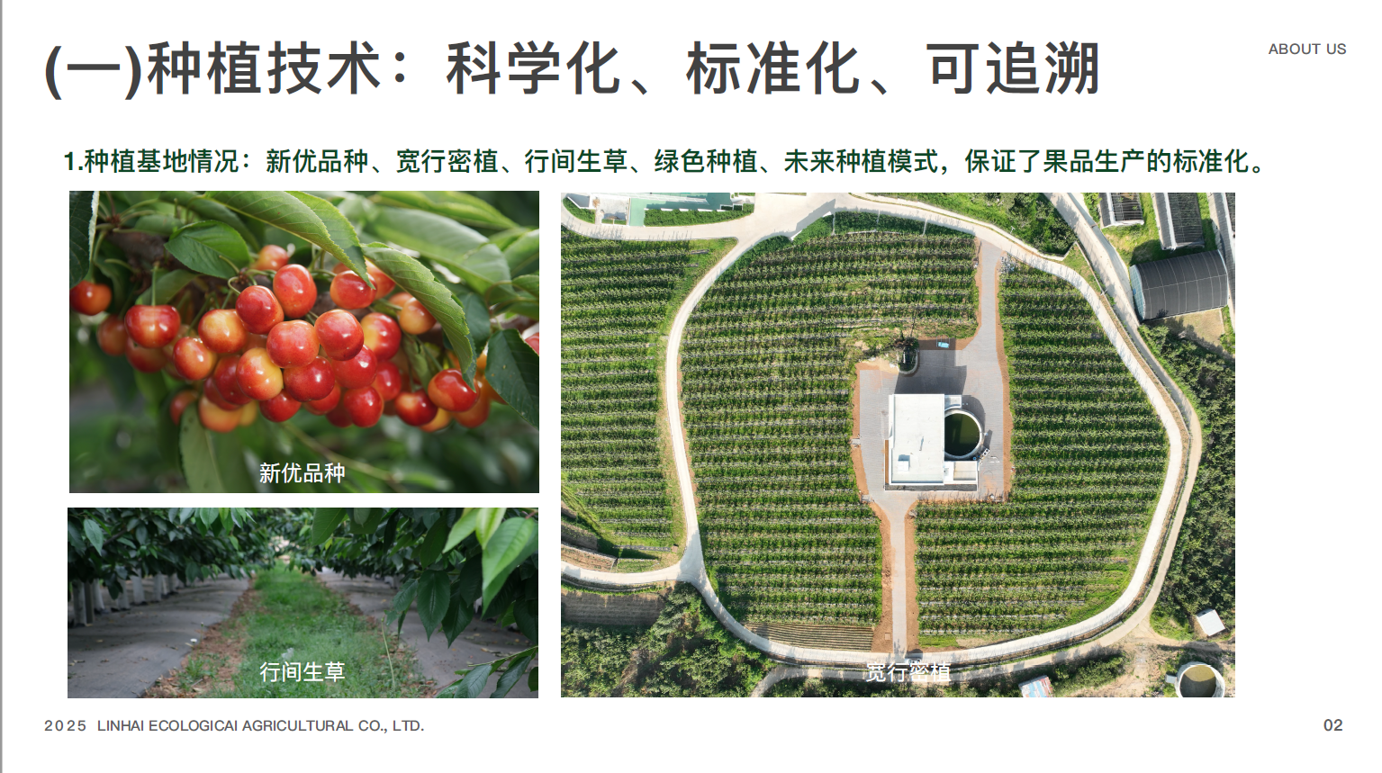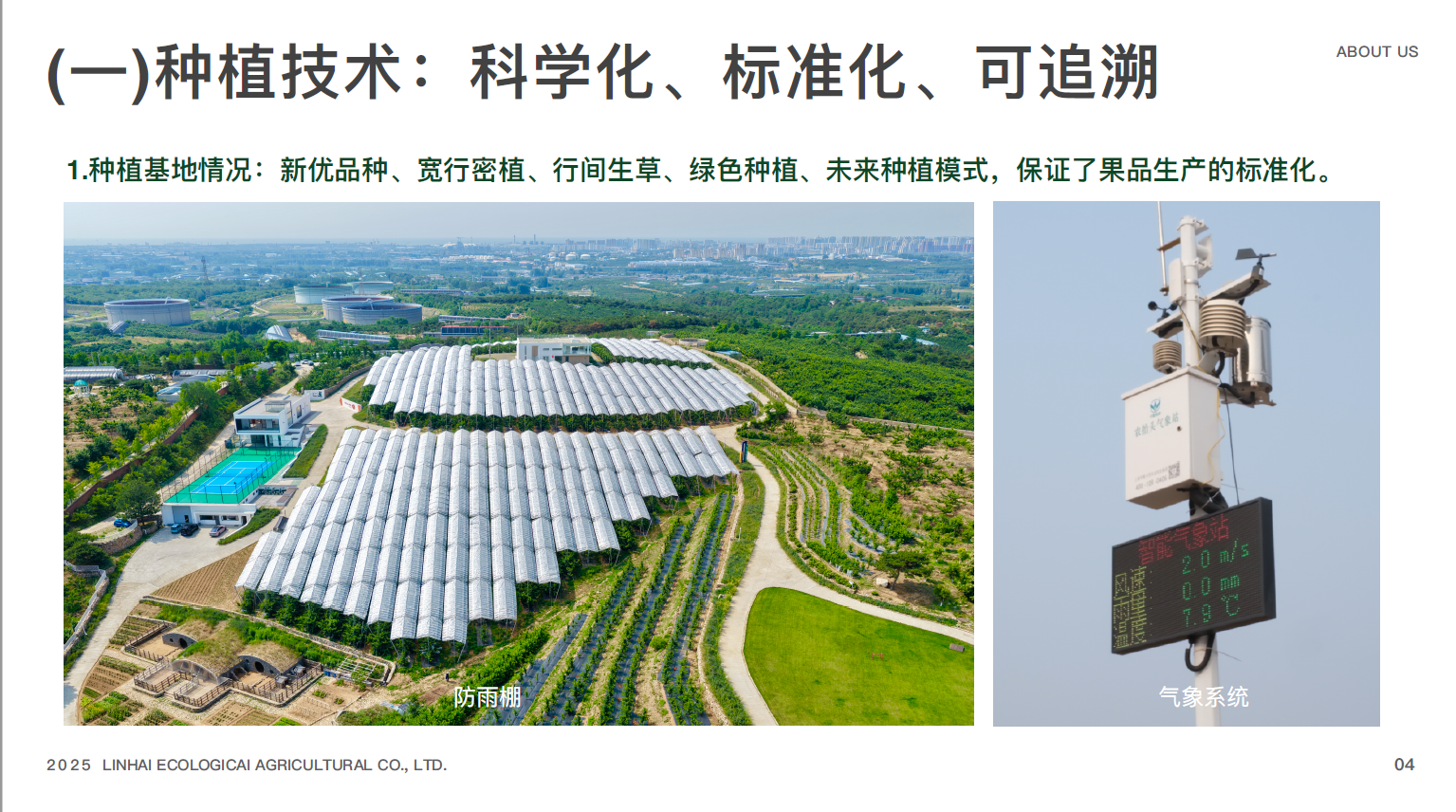 进的生产技术和种植理念,生产自动化较高,机械化生产水平较高,同时品种优新,保证了果品的标准化生产和高质量生产。
