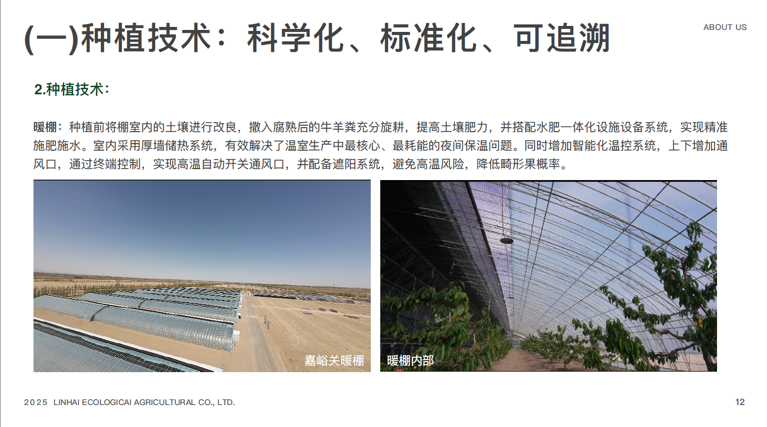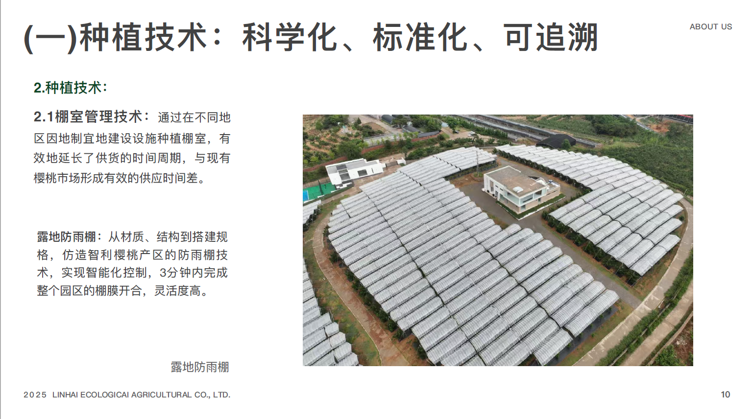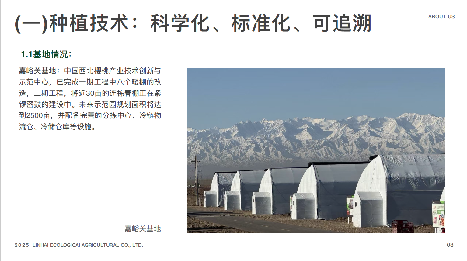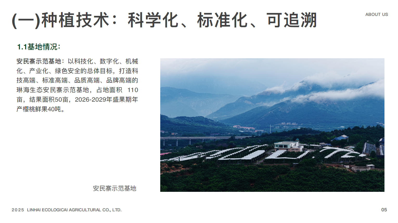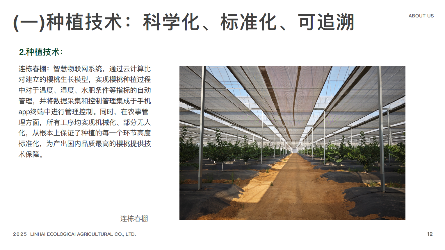 琳海生态农业自持陆地樱桃种植基地、连栋春棚樱桃种植基地及樱桃繁育苗圃,育大树基地共1200亩,全部采用我公司获得全国独家