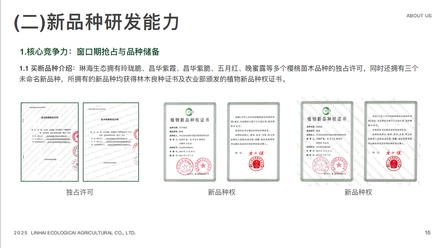生产经营权的河北省农林科学院昌黎果树研究所研发培育的新品种玲珑脆、五月红、昌华紫霞、昌华紫脆、晚蜜露进行种植。园区具有先